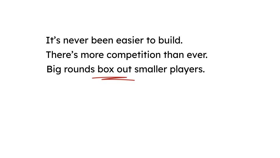 When products become easier to build, then more competition will follow. Not to mention with all of the capital currently being pumped into the ecosystem, for every category creating product that's backed by a top-tier firm there will be copycats that can easily raised from firms that missed out on the predecessor.