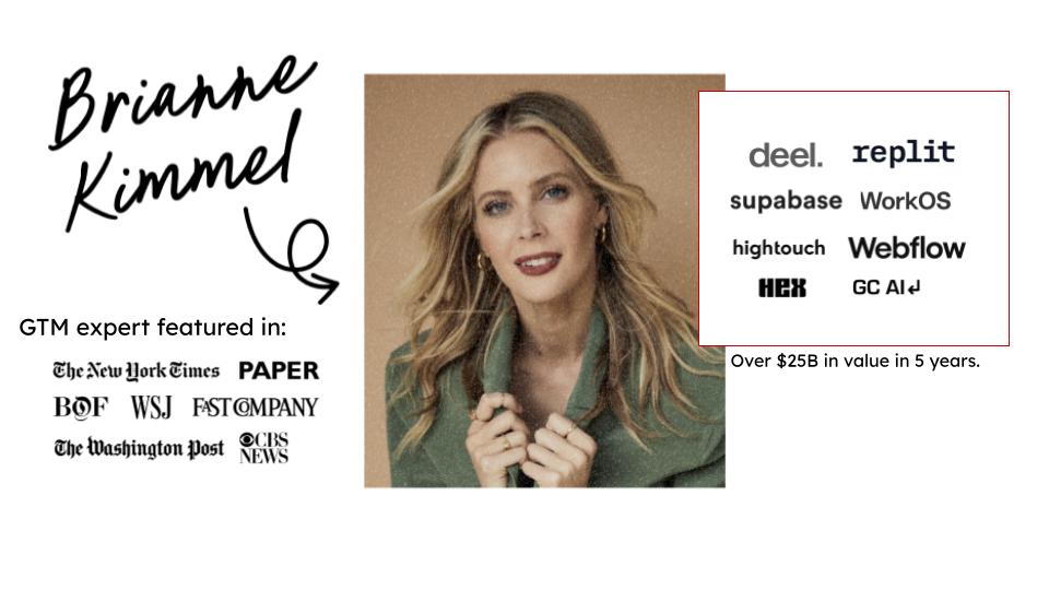 I'm Brianne Kimmel and I've spent the last decade helping companies with GTM. At Zendesk, I worked on the GTM strategy team to develop programs to scale to $1B ARR through a coordinated effort to expand from a single core product (primarily self-serve) to a suite of multiple products that could be bundled and sold to enterprise customers.